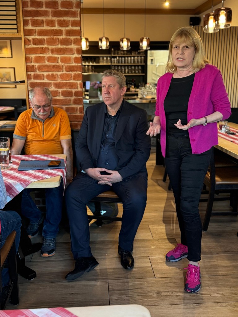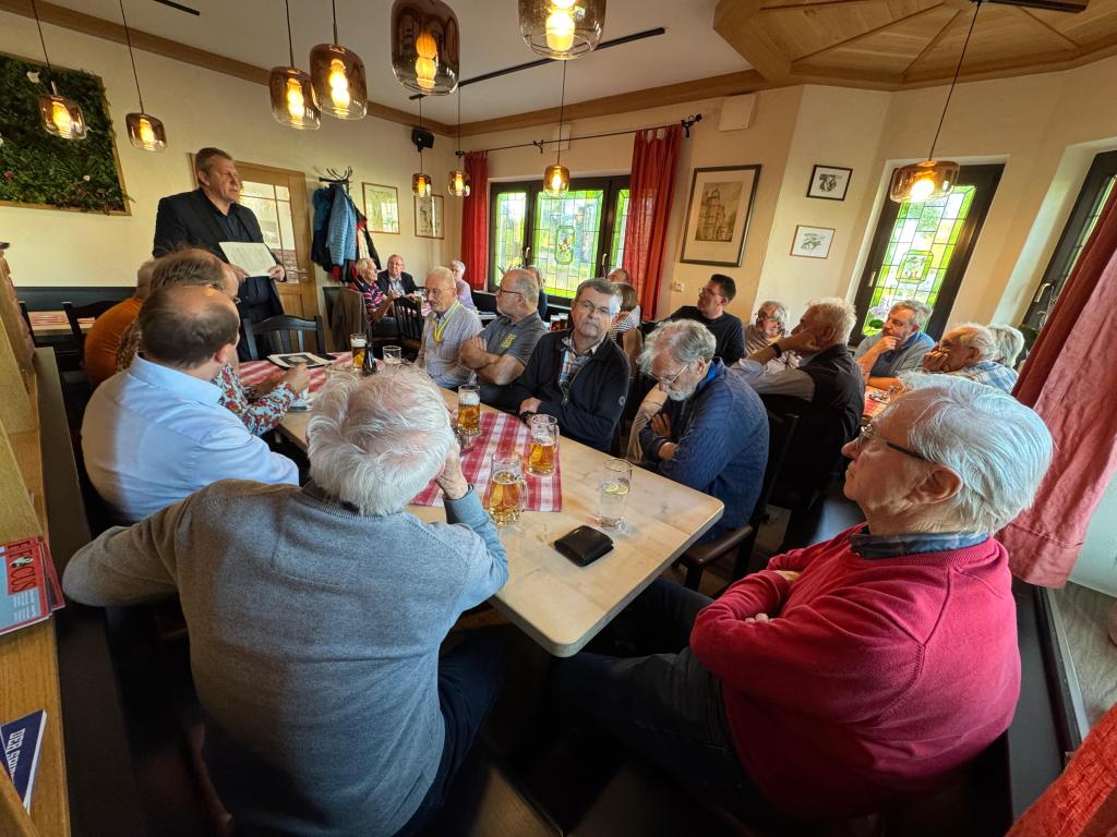 Dr. Ralf Völkl begrüßte Ende April im Gasthaus „Frische Quelle“ den Bamberger Bundestagsabgeordnete Andreas Schwarz. In seinem Bericht gab dieser einen kurzen Überblick zu den wichtigsten Punkten des neuen Koalitionsvertrages zwischen CDU/CSU und SPD. In der anschließenden Diskussion standen insbesondere die Themen Absicherung des Rentenniveaus, die geplante steuerliche Entlastung kleiner und mittlerer Einkommen, die Grundsicherung sowie der Wehrdienst im Fokus. Schwarz ist Mitglied des Haushaltsausschusses und in dieser Funktion stellvertretender Sprecher der Arbeitsgruppe Haushalt der SPD-Bundestagsfraktion. Als Abgeordneter im Haushaltsausschuss ist Andreas Schwarz der zuständige (Haupt)Berichterstatter für den Haushalt des Verteidigungsministeriums und für das Sondervermögen Bundeswehr.