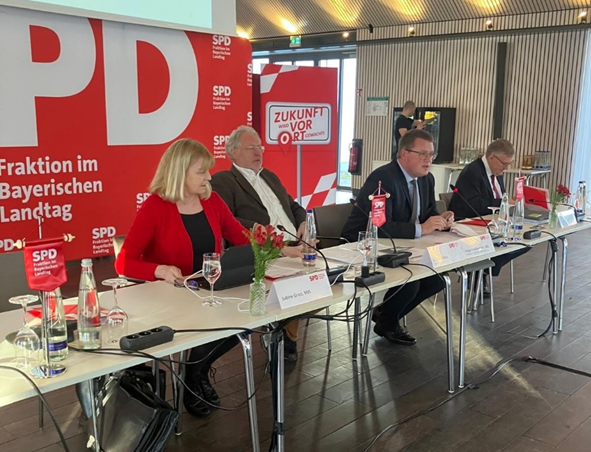 Vom 20. bis zum 22. Januar fand die Winterklausur der SPD-Fraktion im Bayerischen Landtag in Bad Aibling statt. Unter dem Motto „Zukunft wird vor Ort gemacht“ lag der Schwerpunkt dieses Jahr auf den Herausforderungen der Kommunen, dem Wohnungsbau und der Sicherheitspolitik. Unter den zahlreichen Gästen fanden sich auch einige prominente Genossinnen und Genossen aus Bund und Ländern: Peer Steinbrück (ehemaliger Bundesfinanzminister und Ministerpräsident von Nordrhein-Westfalen), MdB Dr. Matthias Miersch (Vorsitzender der SPD-Bundestagsfraktion), MdB Michael Schrodi (Parlamentarischer Staatssekretär BMF), MdB Carsten Träger (Parlamentarischer Staatssekretär BMUKN), MdB Heike Heubach (Wohnungslosenbeauftragte des Bundes), MdB Dr. Carolin Wagner (Landesgruppenvorsitzende), MdB Christoph Schmid, MdB Sebastian Roloff und Ronja Endres (beide Vorsitzende der BayernSPD).